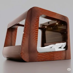 Luminova Smart Bed AI – Bọc da mang hơi thở của sự ấm áp, cổ điển nhưng vẫn đậm chất đương đại. Lớp bọc da vân cá sấu sẫm giúp tôn lên vẻ đẹp sang trọng, mạnh mẽ và đầy bản lĩnh cho không gian phòng ngủ. Thiết kế với các đường cong liền mạch, bao quanh bởi khung kính tối màu, tạo nên cảm giác kín đáo và thư thái tuyệt đối – như một căn phòng mini thu nhỏ trong lòng một chiếc giường.